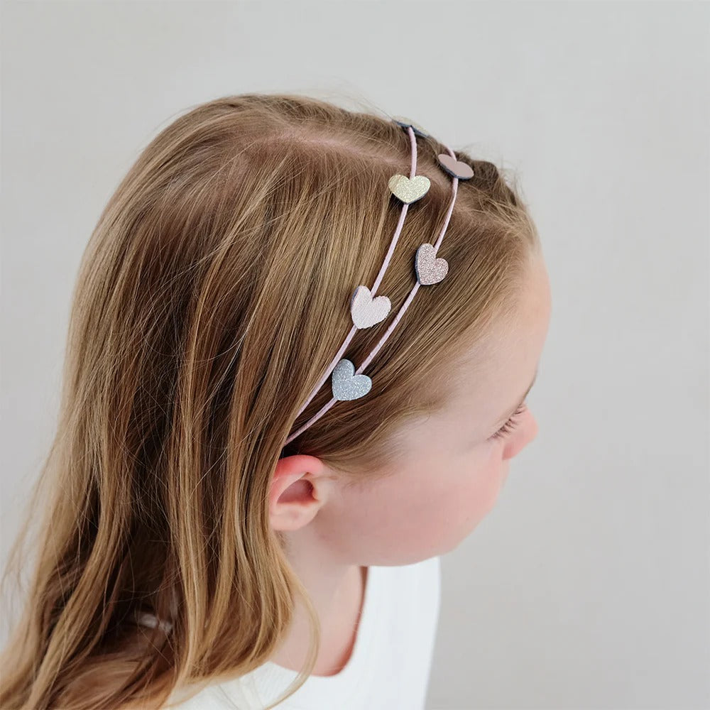 Mimi & Lula Heart Double Alice Taç, yumuşak ve rüya gibi renk paletiyle her saç stiline tatlı ve eğlenceli bir dokunuş katıyor. Şık kalp detaylarıyla süslenen bu taç, 3-10 yaş arası çocukların günlük ve özel görünümüne mükemmel uyum sağlar.
