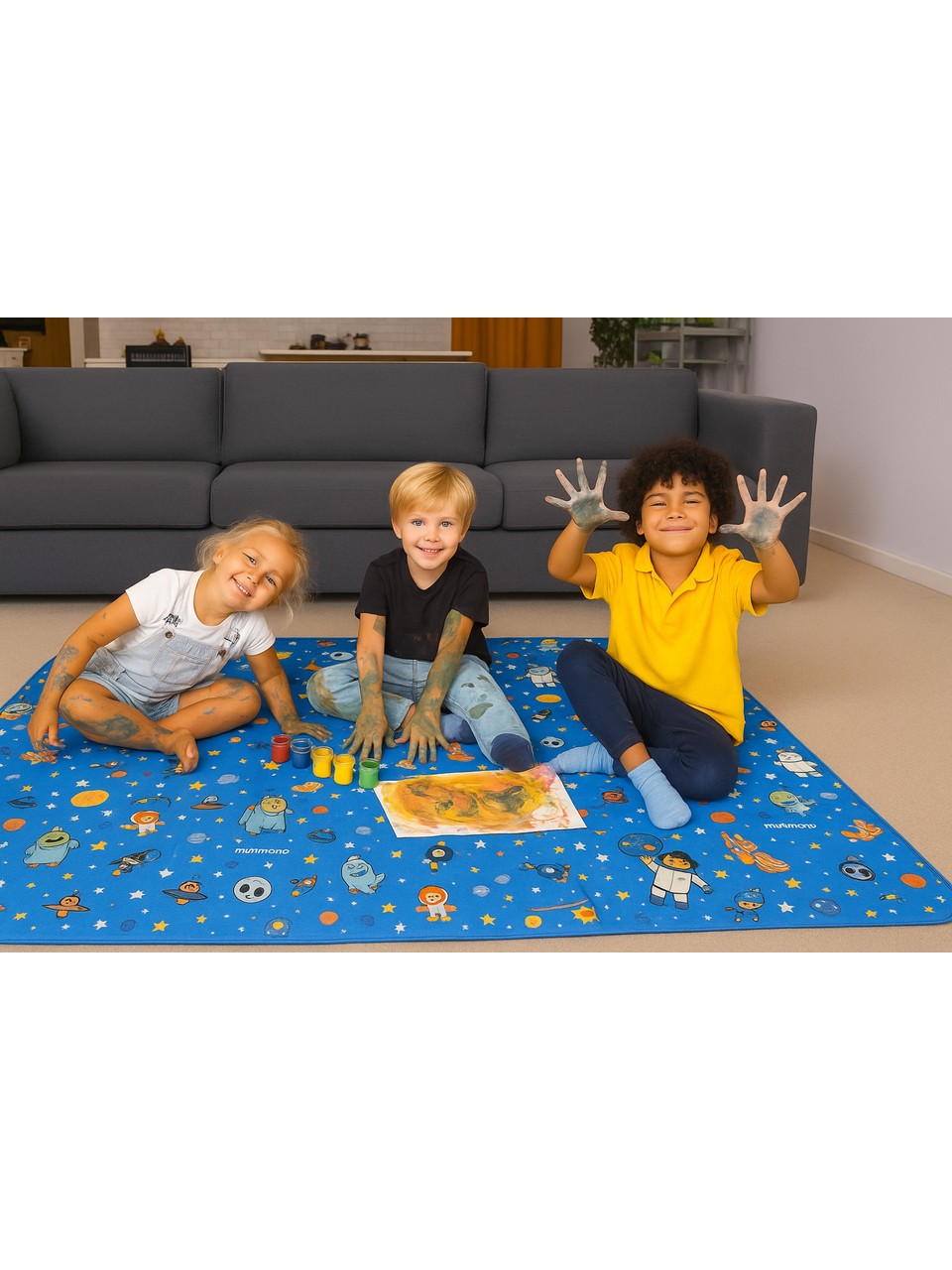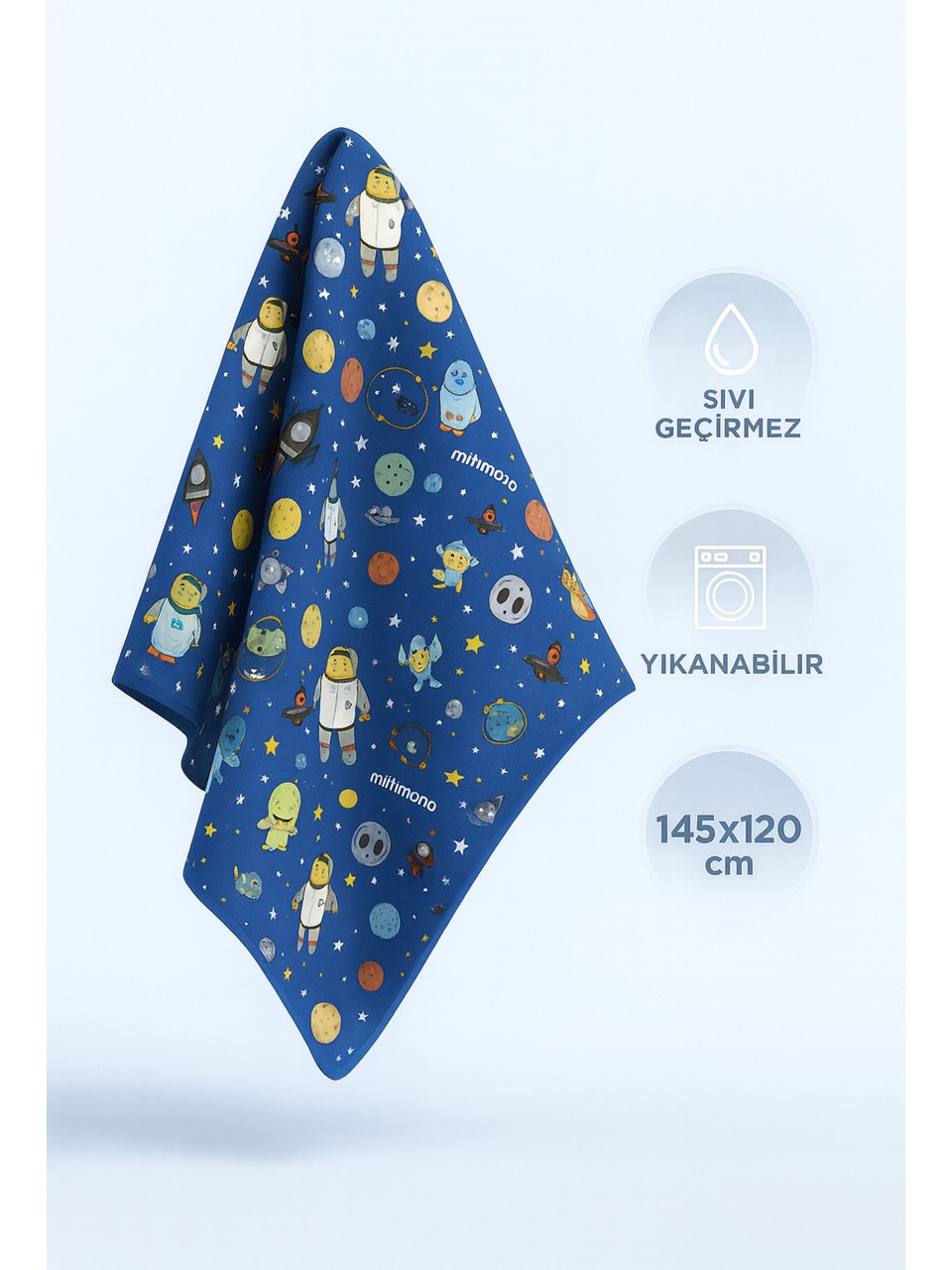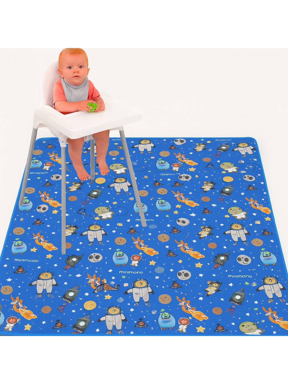 Minimono Mama Sandalyesi Altı ve Aktivite Örtüsü, yemek, oyun ve sanat aktivitelerini çok daha temiz ve pratik hale getirmek için tasarlandı. Mama sandalyesi altı örtüsü, aktivite minderi, kir tutmaz oyun örtüsü gibi pek çok amaçla kullanılabilen bu ürün; yemek zamanı yere, oyun zamanı zemine, piknikte bahçeye veya boyama sırasında masaya kolayca serilebilir.