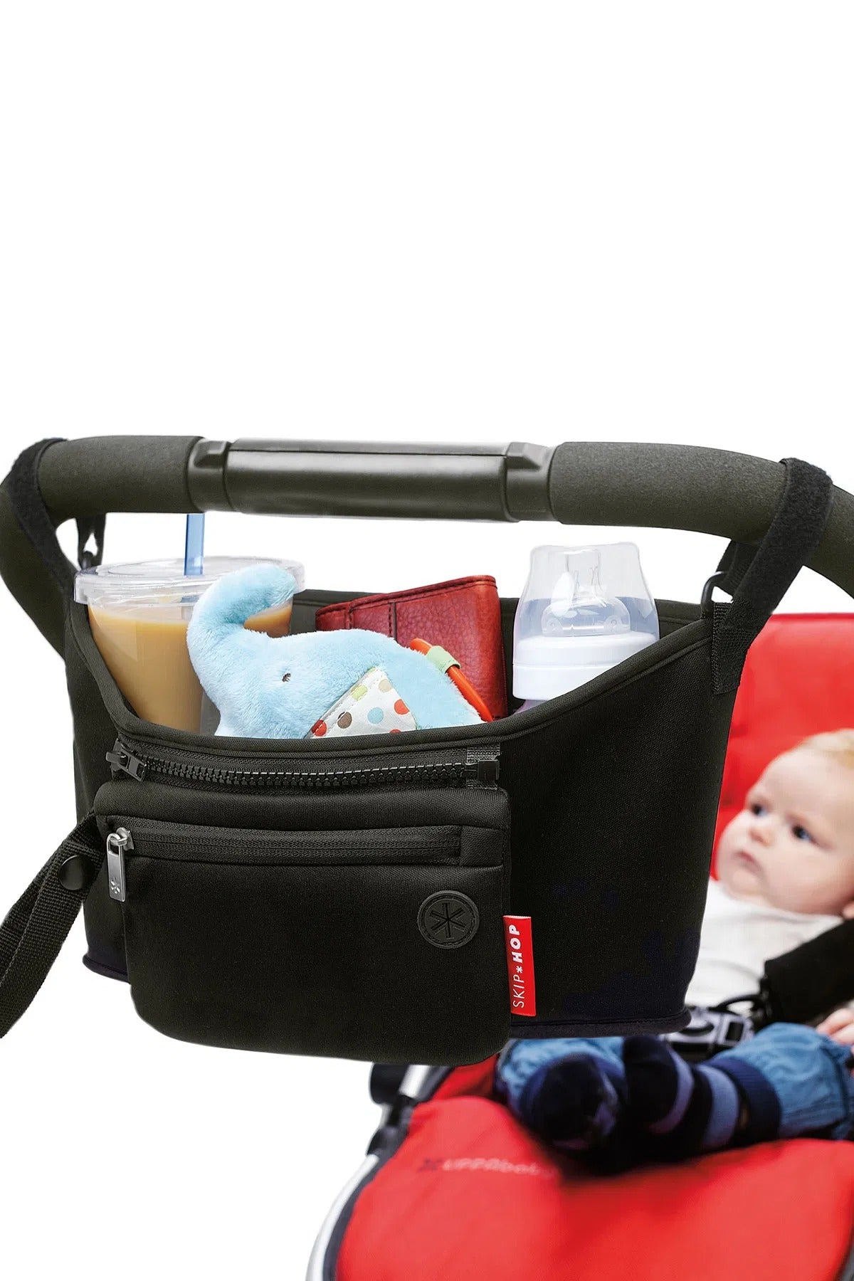 Bu yalıtımlı içecek ve eşya kutusu, en önemli eşyalarınıza kolay erişim imkanı sağlarken şişelerinizi ve kahve fincanlarınızı güvenli bir şekilde tutmak için geniş alan sunar. Çoğu bebek arabası barı ve kolu ile uyumlu olan bu düzenleyici çanta, günlük işleriniz için çıkarılabilir bir halka ve rahat aramalar yapmanız için bir kulaklık bağlantı noktası içerir.Özellikleri: