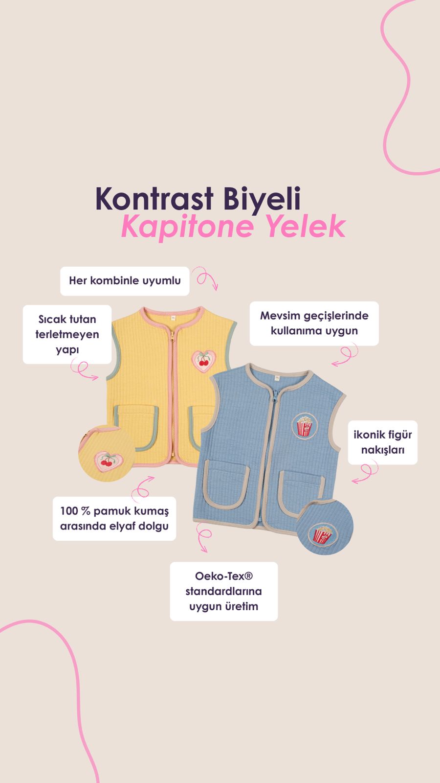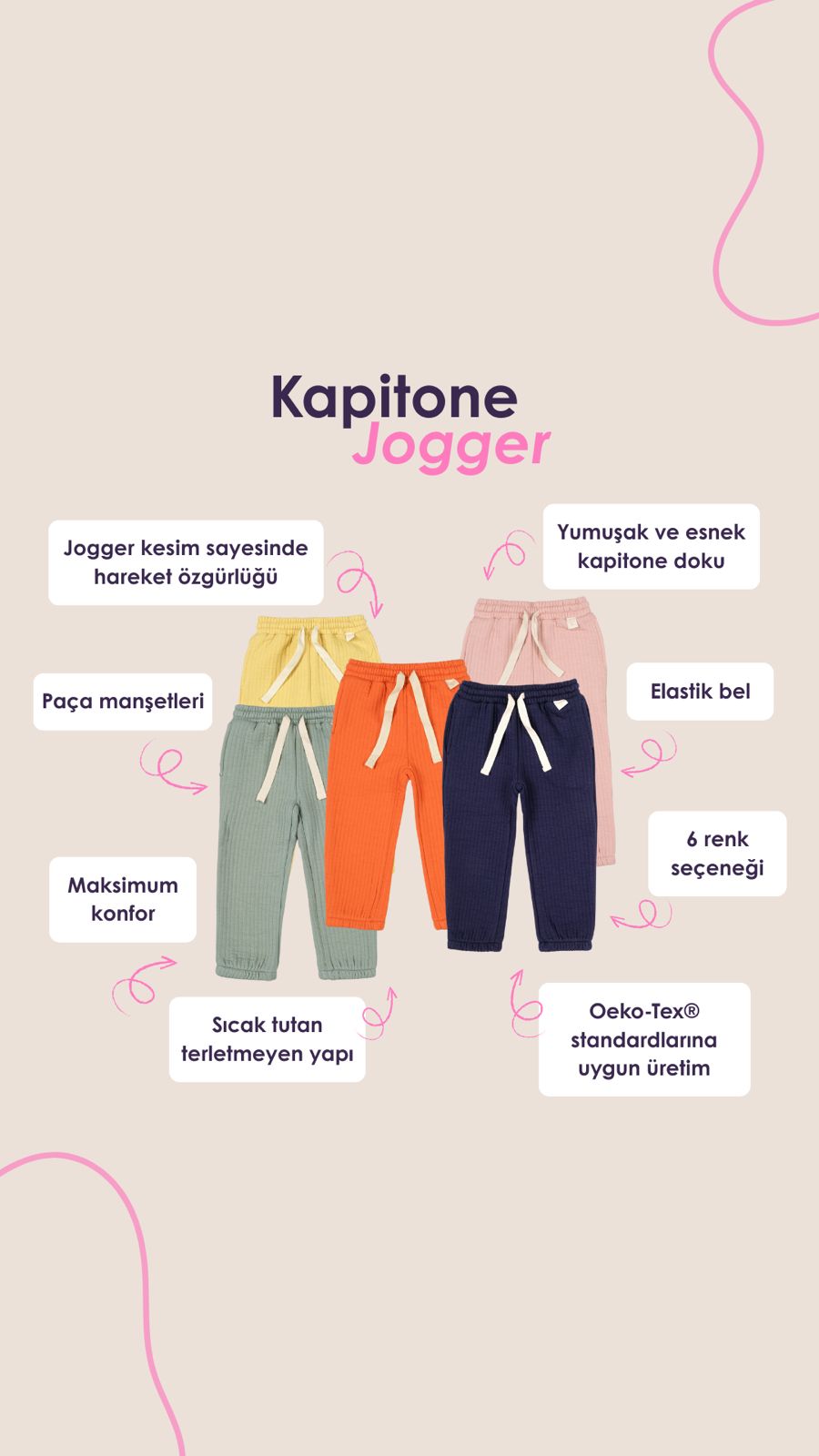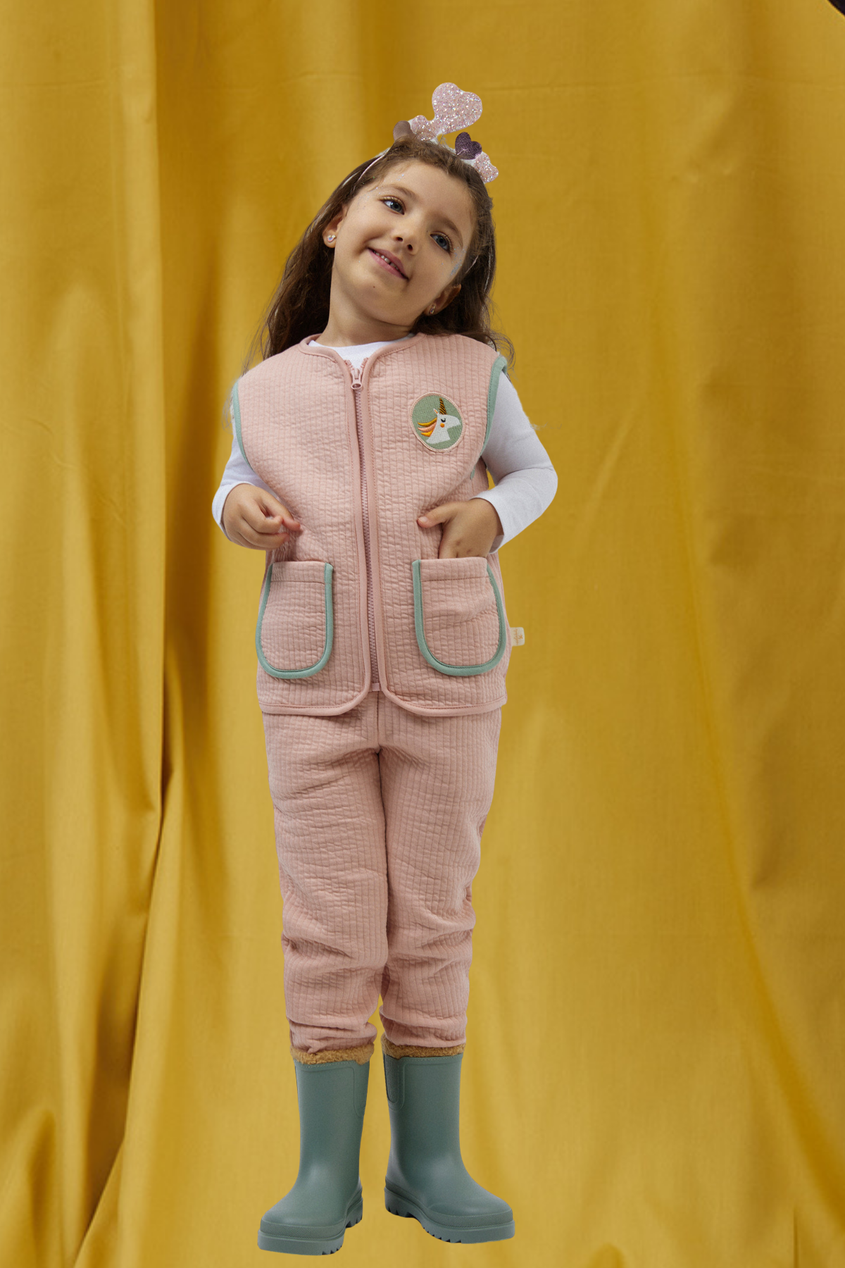 Masalsı Şıklık Somon Kapitone Yelek, Somon Kapitone Jogger 2'li Çocuk Kombini