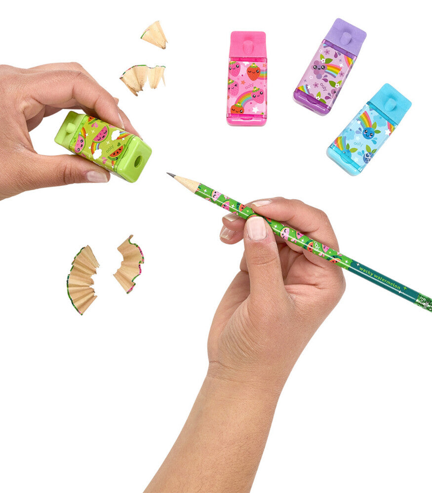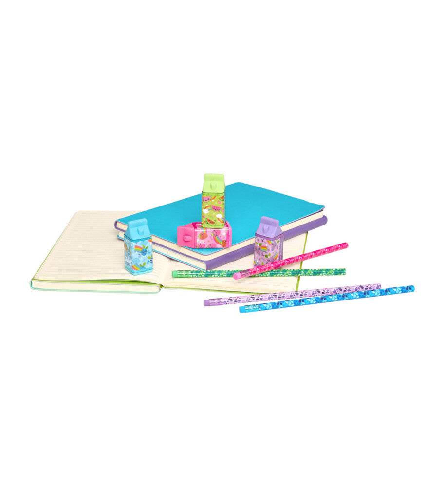 Ürün içeriği: 1 adet meyve suyu kutusu şeklinde kalemtıraş-silgi