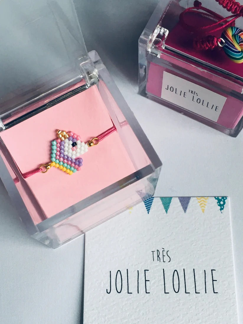 Tres Jolie Lollie jewelry suitable for little ones is now at Miela Kids. Bracelet embroidered with Miyuki beads.